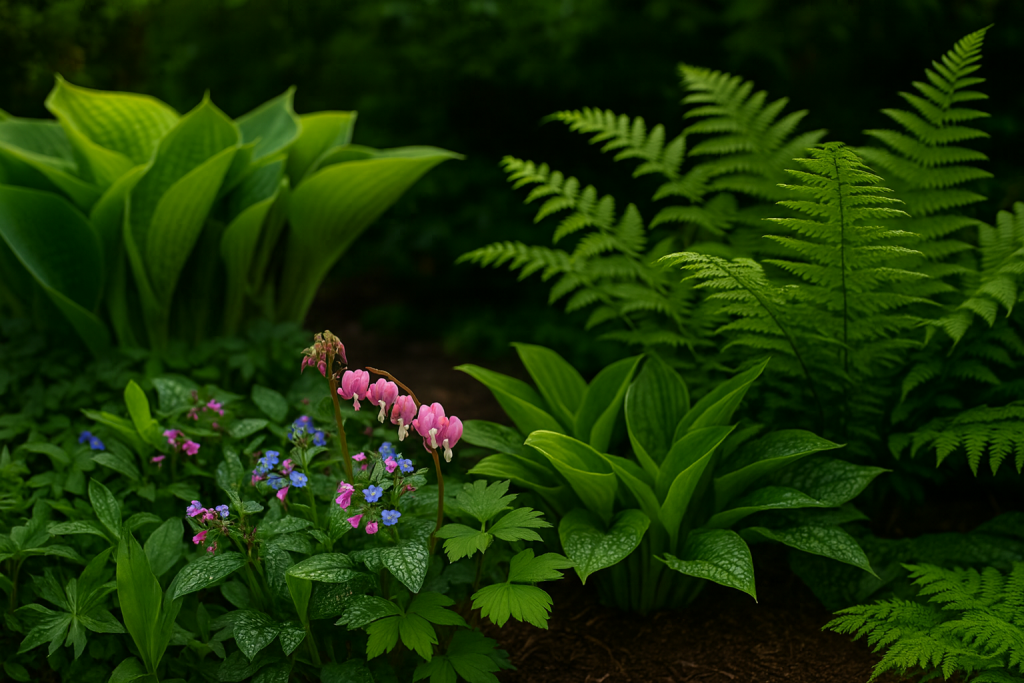 - Pair with hostas (broad foliage contrast) and ferns (soft textures).