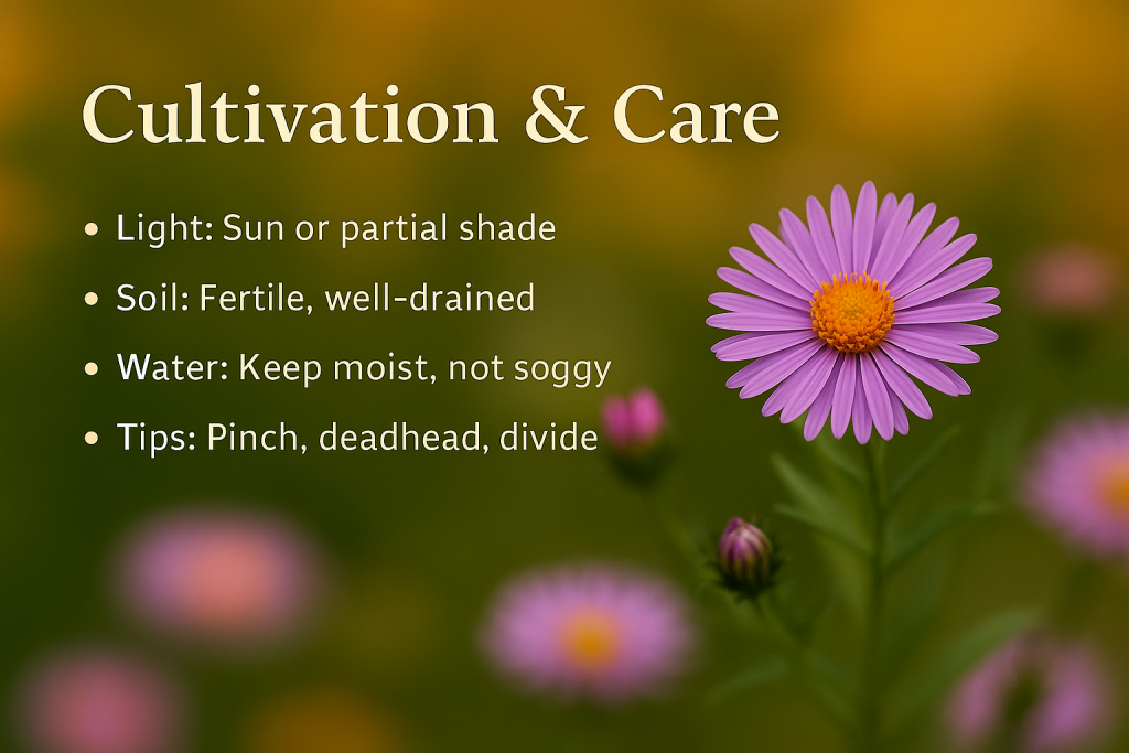 • Cold Climates (Zones 3–5): Choose hardy cultivars like Symphyotrichum novae-angliae. Apply mulch before frost.