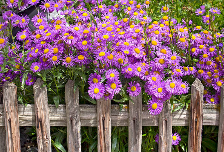 • Star-shaped, daisy-like flowers in purple, lavender, blue, pink, and white with golden centers.