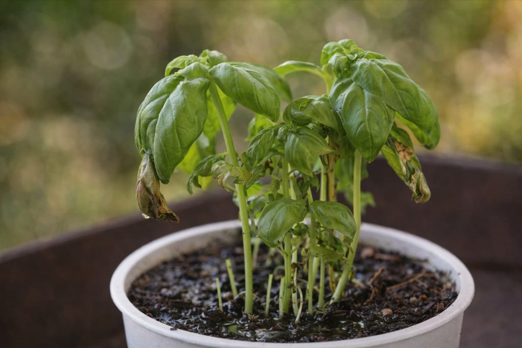 Basil roots need oxygen as much as moisture. When soil stays wet, oxygen is displaced, roots suffocate, and water uptake drops.