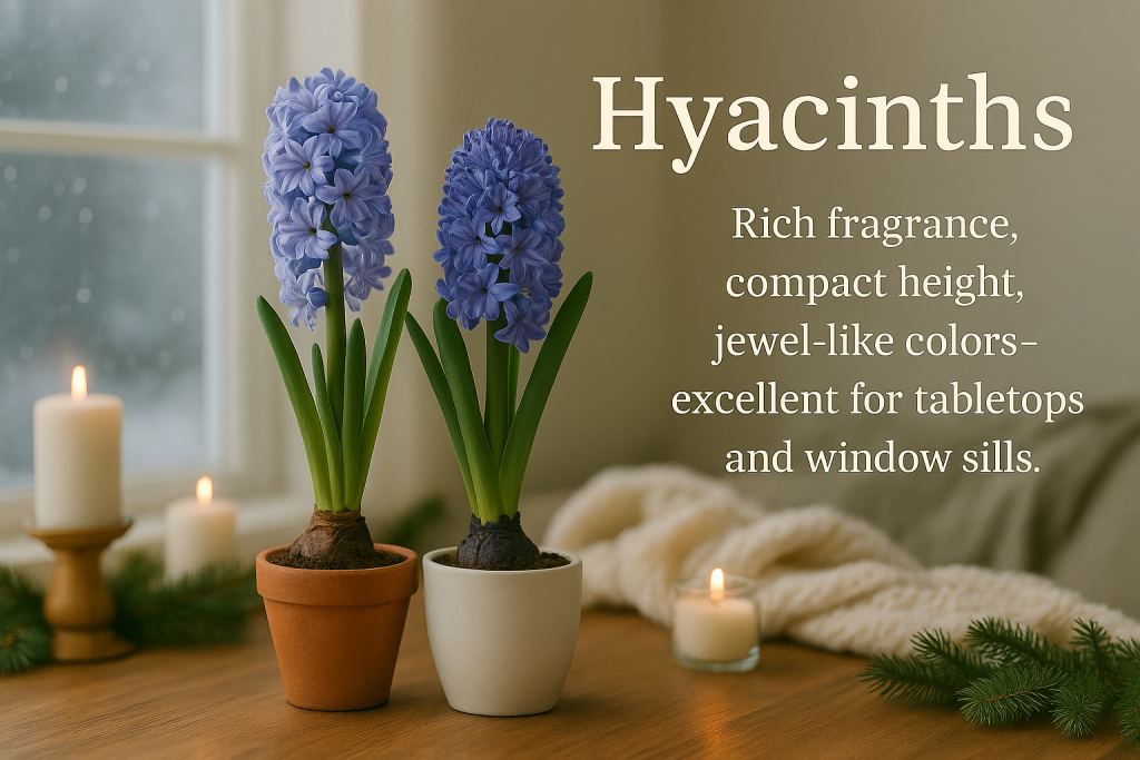 When winter arrives and the landscape settles into stillness, flowering bulbs bring a welcome spark of life indoors. Their color, fragrance, and sculptural forms offer a natural counterpoint to cold air and early sunsets—especially during the holiday season.